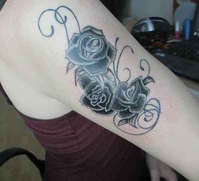 työpaikallani takahuoneessa! kyllä luit aivan oikein! :D Kaverini suositteli tätä Sami Karisolaa joka on hänen kaverinsa. Se tekee keikkailua ja tuo tavaransa sinne minne pyydät. Yleensä se on kotiin, mutta tällä kertaa meidän kahvio toimi tatuointiliikkeenä :D en nimittäi ollut ainoa joka siellä sai leimaa ihoonsa! Muistan vieläkin kun sen tatskan tekoon meno 3h! Sami teki tosi tarkkaa jälkeä. Mua alkoi väsyttää sikana vaan katon tuijottaminen ja kun tatuoija oli vaan hiljaa ja mie ujona tyttönä en keksiny mitää sanottavaa. No yhtäkkiä säpsähdän siihen Sami alkaa nauraan. Olin vähän että mitä?!?! - ''nukahdit! tää on eka kerta mun tatuoija historian aikana kun joku nukahtaa piikitettäessä! isot rekkamiehetkin vaan itkeneet ja tää tyttönen koisaa! '' hahaha! Säpsähdin sen jälkee parii otteesee ku meinas silmä lipsua väkisin kiinne!